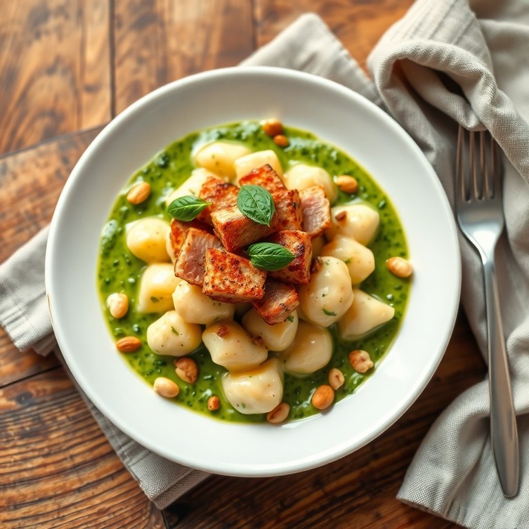 Crema di Gnocchi con Pesto e Tonno Croccante