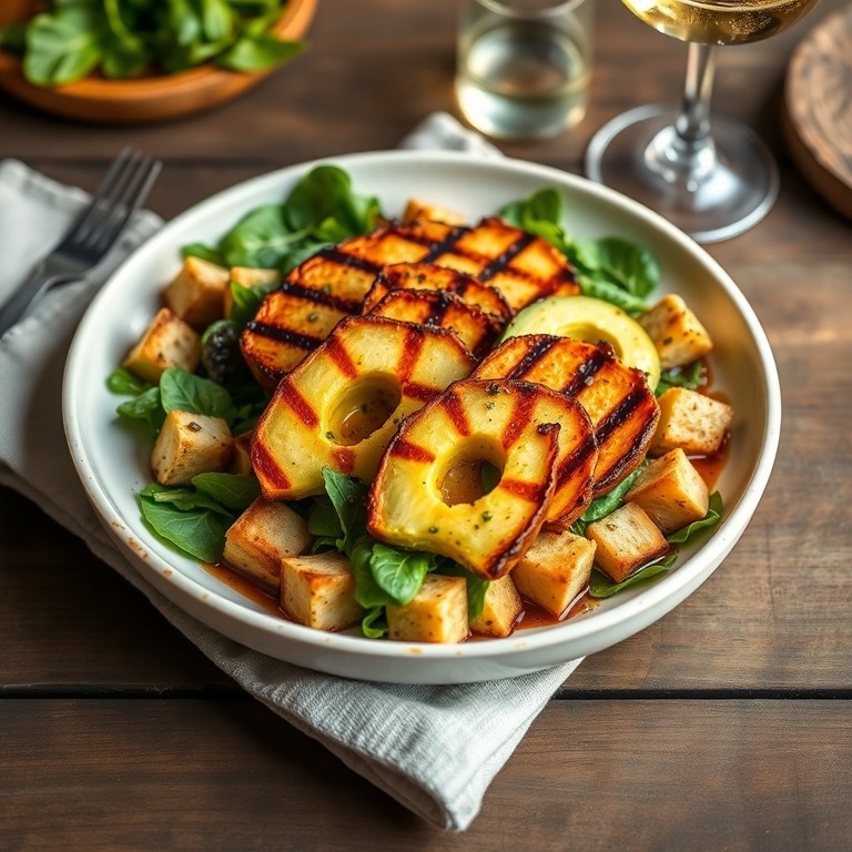 Insalata di Seitan, Pane Croccante e Avocado alla Griglia