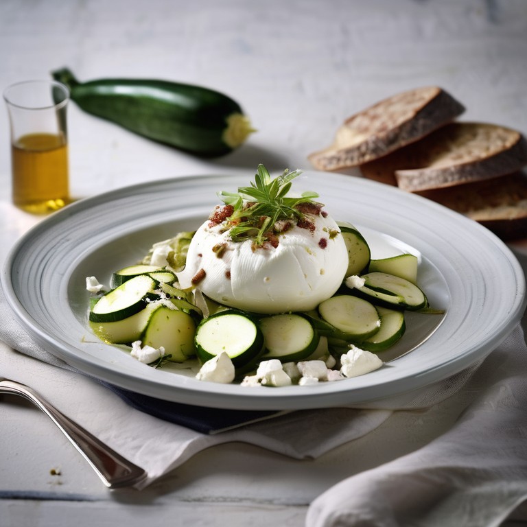 Ein köstlicher Auflauf mit Zucchini, würzigem Feta, herzhafter Salsiccia, cremiger Burrata und aromatischem Reis.