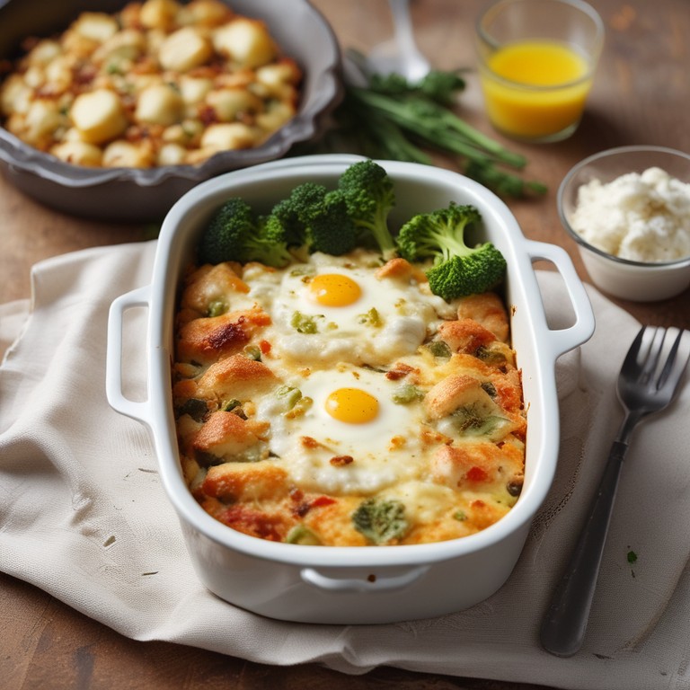 Ein köstliches Gemüsegratin mit Kartoffeln, Karfiol, Brokkoli, Zwiebeln, Knoblauch, Eiern und cremiger Creme Fraiche. Perfekt für ein herzhaftes Abendessen.