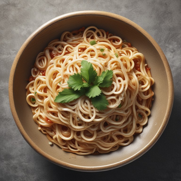 Ein köstliches asiatisches Nudelgericht mit einer würzigen Sauce aus Knoblauch, Ingwer und Sojasauce. Die Kombination aus verschiedenen Aromen und Texturen macht dieses Gericht zu einem echten Gaumenschmaus. Perfekt für alle, die auf Fleisch, Fisch, Brokkoli, Gemüse und Tomaten verzichten möchten und dennoch ein authentisches asiatisches Gericht genießen wollen.