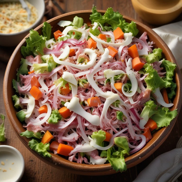 Esta ensalada fresca de zanahoria, lechuga y jamón es perfecta para un almuerzo ligero o como acompañamiento en una comida. La combinación de sabores y texturas la hace irresistible, y es muy fácil de preparar.