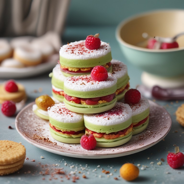Estos alfajores de pistacho y frambuesa son una deliciosa opción sin TACC, perfectos para disfrutar en cualquier ocasión. La combinación de la suavidad de la galleta de pistacho con el sabor dulce y ácido de la mermelada de frambuesa los convierte en un postre irresistible.