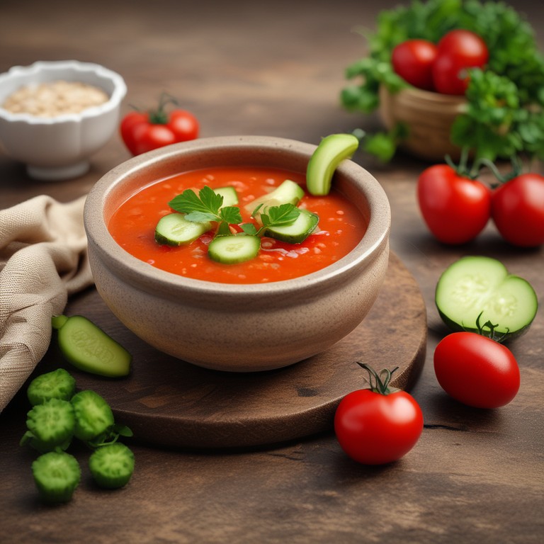 El gazpacho andaluz es una sopa fría tradicional de España, ideal para los días calurosos. Esta receta combina tomates frescos, pepinos y pimientos, creando un plato refrescante y lleno de sabor. Perfecto como entrante o para disfrutar en una comida ligera.