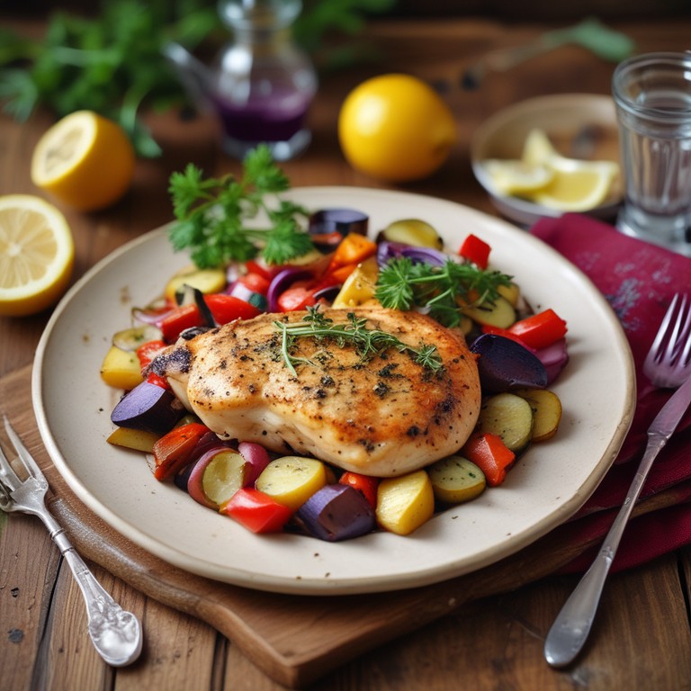 Una cena deliciosa y saludable que combina el sabor del pollo marinado en limón con una colorida mezcla de verduras asadas. Perfecta para una ocasión especial o una cena familiar.
