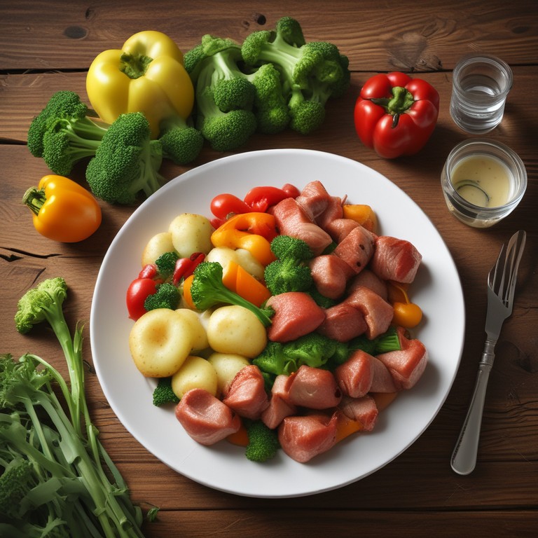Geschnetzeltes mit Kartoffeln, Brokkoli und Paprika