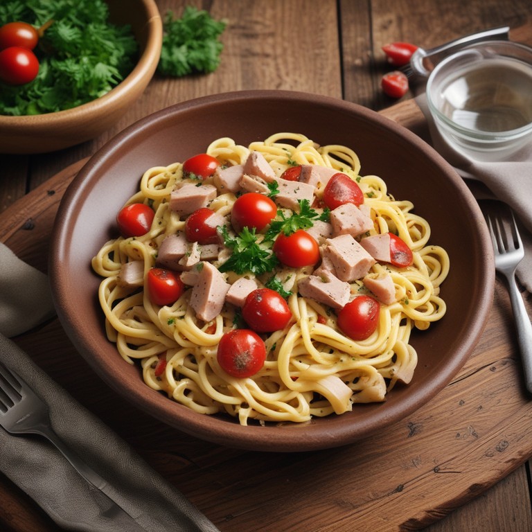 This Tuna and Ham Pasta Delight is a quick and easy dish that combines the flavors of tender pasta, savory ham, and hearty tuna in a rich tomato sauce. Perfect for a weeknight dinner!