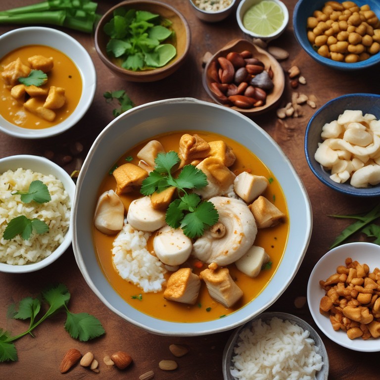 Thai Massaman Khai Curry ist ein reichhaltiges und aromatisches Gericht, das die Aromen von Kokosmilch, Erdnüssen und exotischen Gewürzen vereint. Dieses Curry ist perfekt für ein gemütliches Abendessen und wird traditionell mit Jasminreis serviert. Die Kombination aus zartem Hähnchen, weichen Kartoffeln und der würzigen Currypaste macht es zu einem unvergesslichen Geschmackserlebnis.