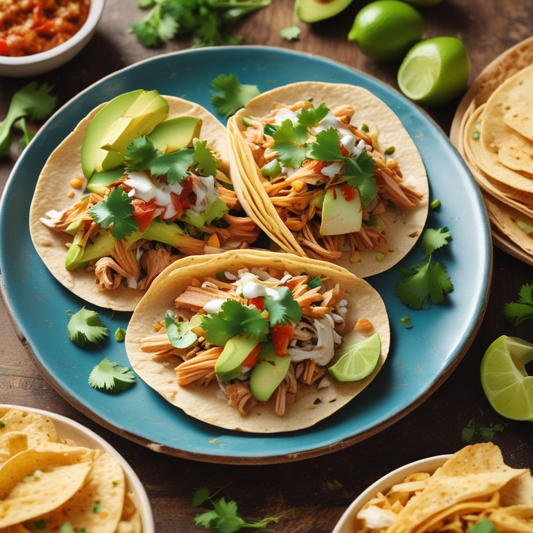 Tacos de Pollo Desmenuzado con Nopales y Aguacate