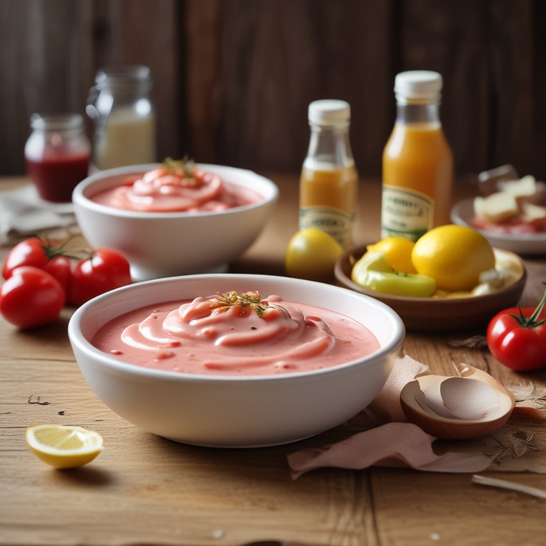 La Salsa Americana es una mezcla cremosa y sabrosa que combina mayonesa, ketchup y mostaza con un toque de limón y especias. Es perfecta para acompañar mariscos, ensaladas o como aderezo para hamburguesas y sándwiches.