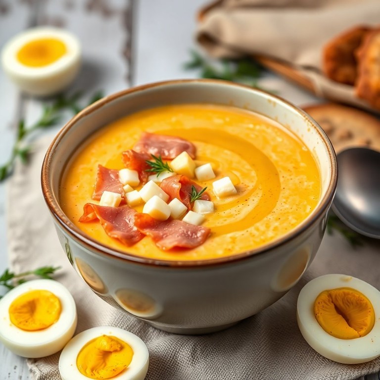El Salmorejo Clásico con Huevo y Jamón es una sopa fría típica de Andalucía, España. Esta receta destaca por su textura cremosa y su sabor refrescante, ideal para los días calurosos. Se elabora con ingredientes sencillos como tomates maduros, pan, ajo y aceite de oliva, y se sirve con huevo duro y jamón ibérico, lo que le aporta un toque de sabor y elegancia.