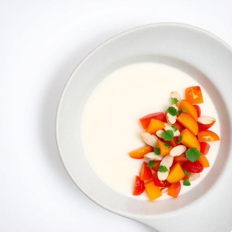 Découvrez une version simplifiée de l'Ajo Blanco et du Tartare de Tomates aux Pêches grâce au Thermomix. Cette recette combine la fraîcheur des tomates et des pêches avec la douceur crémeuse de l'ajo blanco, le tout préparé rapidement et facilement avec votre Thermomix.