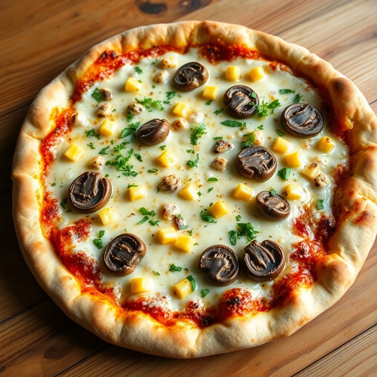 Diese cremige Knoblauch-Pizza ist eine wahre Gaumenfreude. Mit einer reichhaltigen Schlagsahne-Basis, aromatischen Champignons und süßem Mais ist sie perfekt für jeden Pizza-Liebhaber. Die Kombination aus Knoblauch und Kräutern verleiht der Pizza einen unverwechselbaren Geschmack.