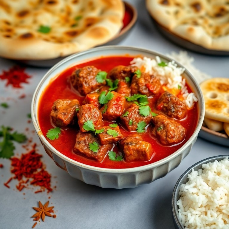 Lamb Rogan Josh is a classic Indian curry that features tender lamb simmered in a fragrant, spiced sauce. This dish is known for its rich flavors and aromatic spices, making it a favorite in Indian cuisine. Perfect for special occasions or a comforting family meal, serve it with rice or naan for a complete experience.