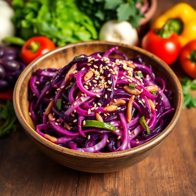 Repollo Morado Salteado con Ajo y Semillas de Sésamo