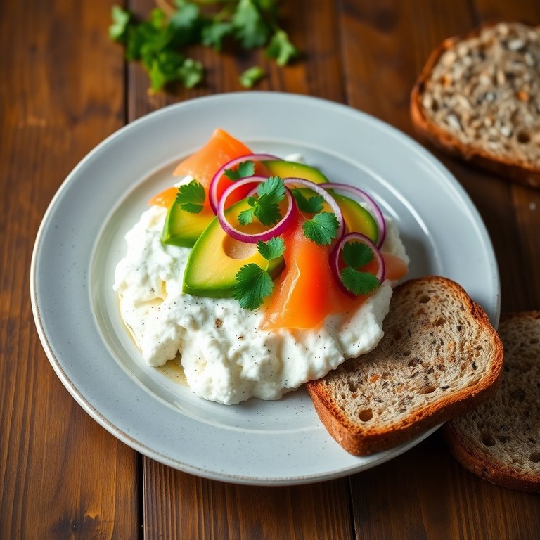 Cottage Cheese con Aguacate y Salmón Ahumado