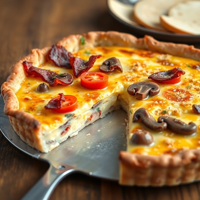 Quiche Lorraine Clásica con Queso Gruyère, Tomate y Champiñones