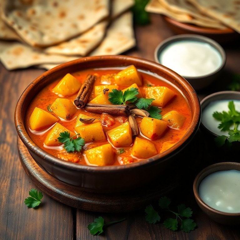 Een smaakvolle en verwarmende Indiase curry met gekookte aardappelen, rijk gekruid met traditionele specerijen zoals komijn, kardemom en garam masala. Deze aardappel masala is eenvoudig te bereiden en perfect als hoofdgerecht of bijgerecht, geserveerd met puri of roti. De combinatie van verse tomaten en aromatische specerijen zorgt voor een diepe, complexe smaak die elke maaltijd verrijkt.