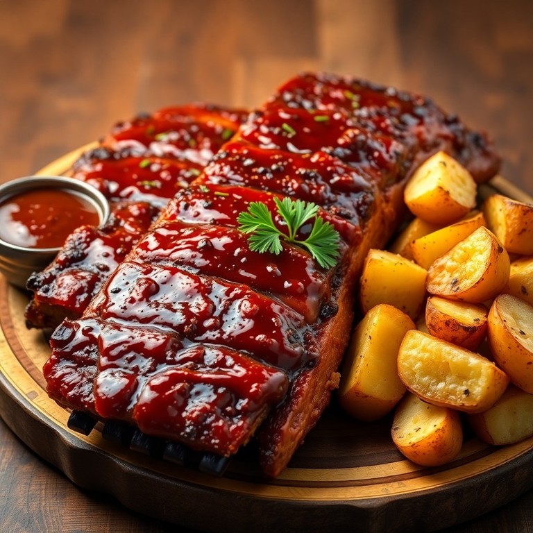Costillas jugosas y tiernas cocidas lentamente al horno con un aliño clásico de especias y bañadas en salsa barbacoa casera, perfectas para una comida familiar llena de sabor y tradición.