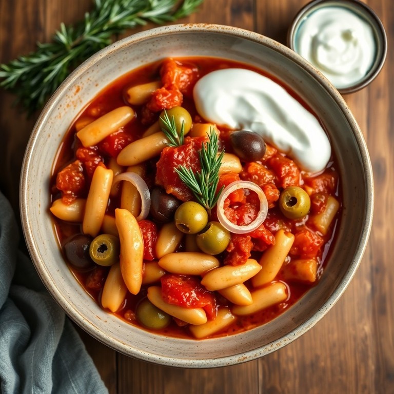 Un classico piatto italiano, ricco di sapore e semplice da preparare, perfetto per una cena confortante. Questa ricetta mette in risalto i fagioli cannellini cucinati lentamente con pomodori cuore di bue freschi, olive verdi denocciolate e cipolla rossa, creando un umido saporito e avvolgente. Lo yogurt magro può essere servito a parte per aggiungere una nota fresca e cremosa al piatto.
