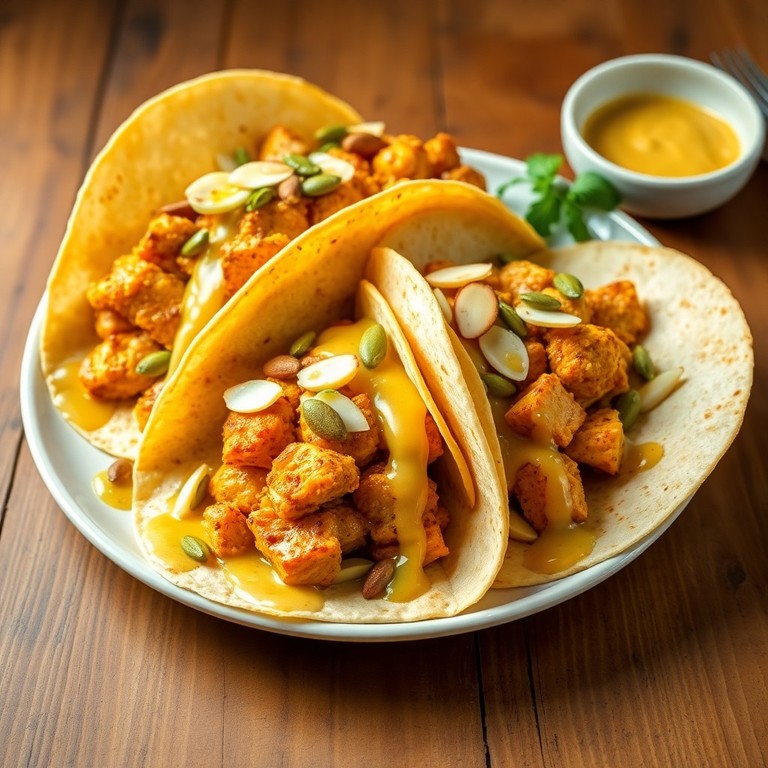 Tacos de Pollo con Jícama, Almendras y Semillas de Calabaza