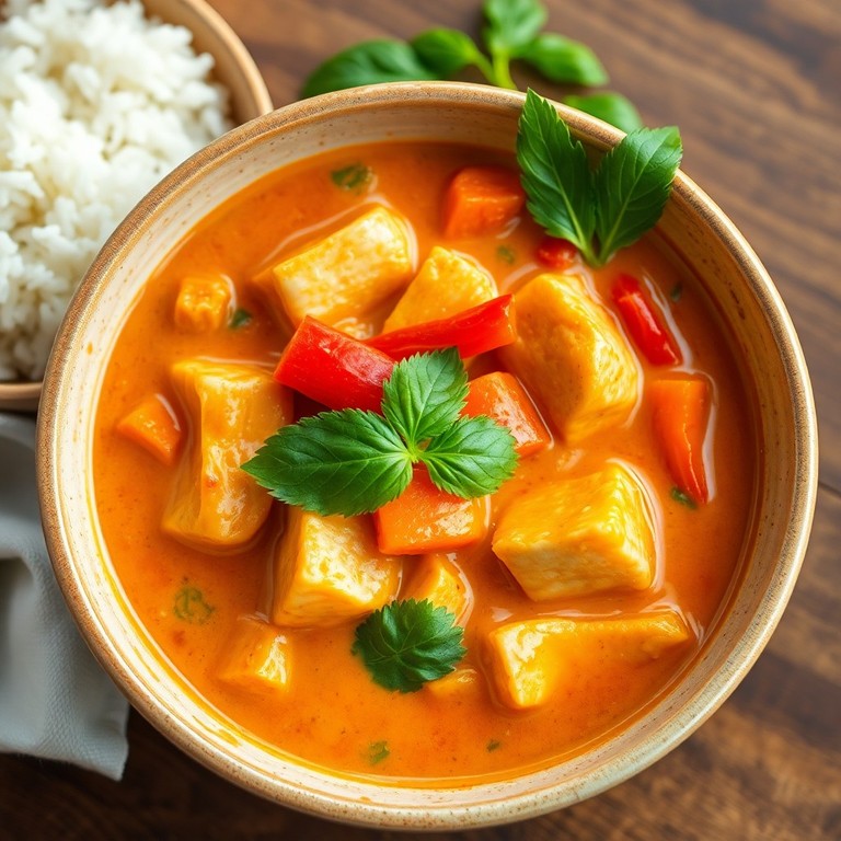 A rich and soothing Thai-inspired curry featuring creamy coconut milk, vibrant vegetables, and your choice of protein. This dish balances traditional Thai flavors with a comforting texture, perfect for a satisfying meal.