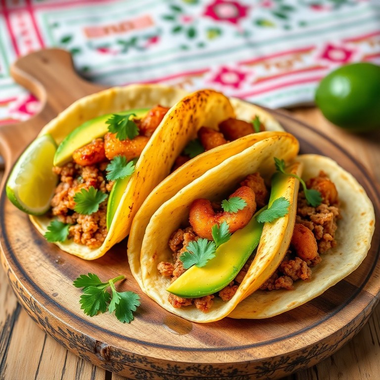 Tacos crujientes que combinan pavo molido sazonado con especias tradicionales, aguacate cremoso y plátano verde frito en rodajas finas. Esta receta es perfecta para una comida rápida, nutritiva y llena de sabor, que equilibra proteínas magras con grasas saludables y un toque dulce y crocante del plátano.