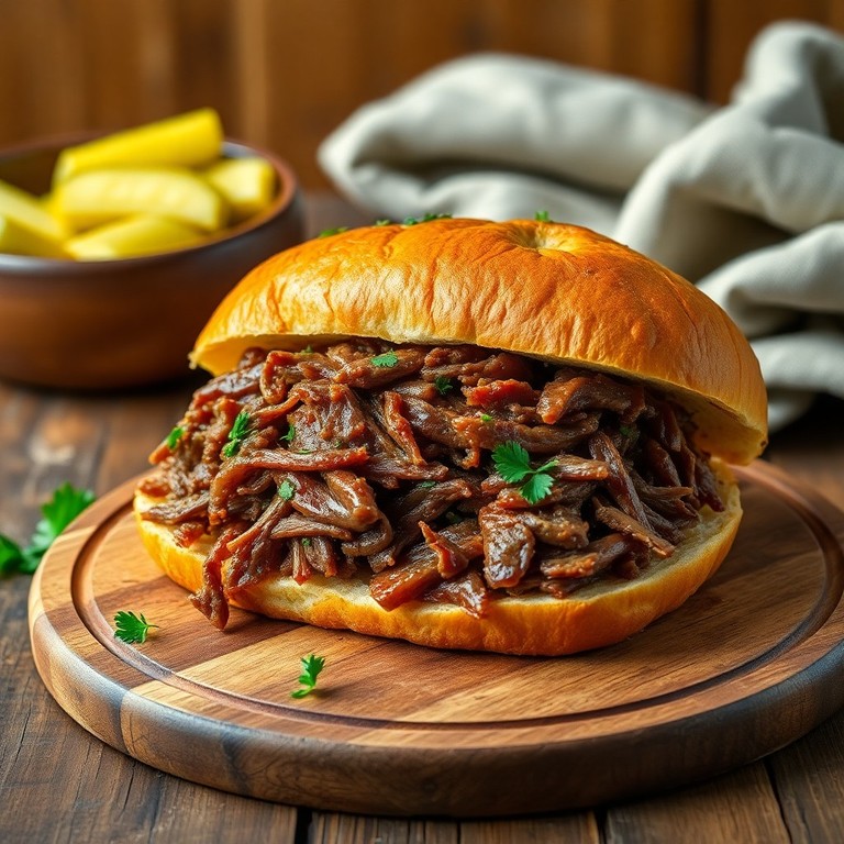 Um clássico brasileiro, o sanduíche de carne louca é preparado com carne bovina desfiada e temperada com um molho saboroso e levemente picante, servido em um pão artesanal crocante. Ideal para um almoço rápido e cheio de sabor, essa receita traz a combinação perfeita entre a suculência da carne e a textura do pão fresco.