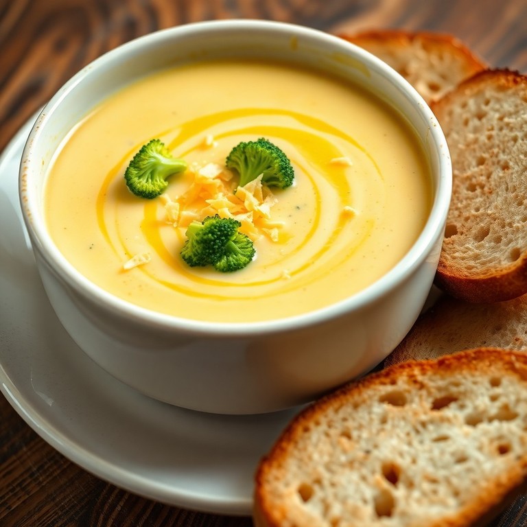 Sopa cremosa de brócoli con queso cheddar
