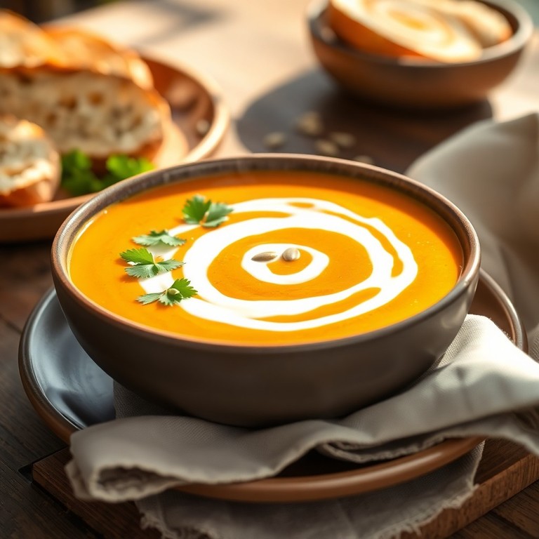A silky smooth butternut squash soup infused with ginger, turmeric, and a swirl of rich coconut cream. This comforting, vegan-friendly dish offers a perfect balance of earthy sweetness and warming spices.