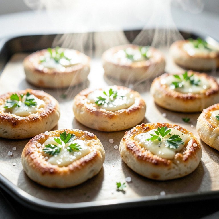 Savory, individual-sized mini flatbread loaves with a soft, chewy interior and crispy, golden-brown crust, infused with rich garlic and herb butter. Perfect for sharing and serving as appetizers.