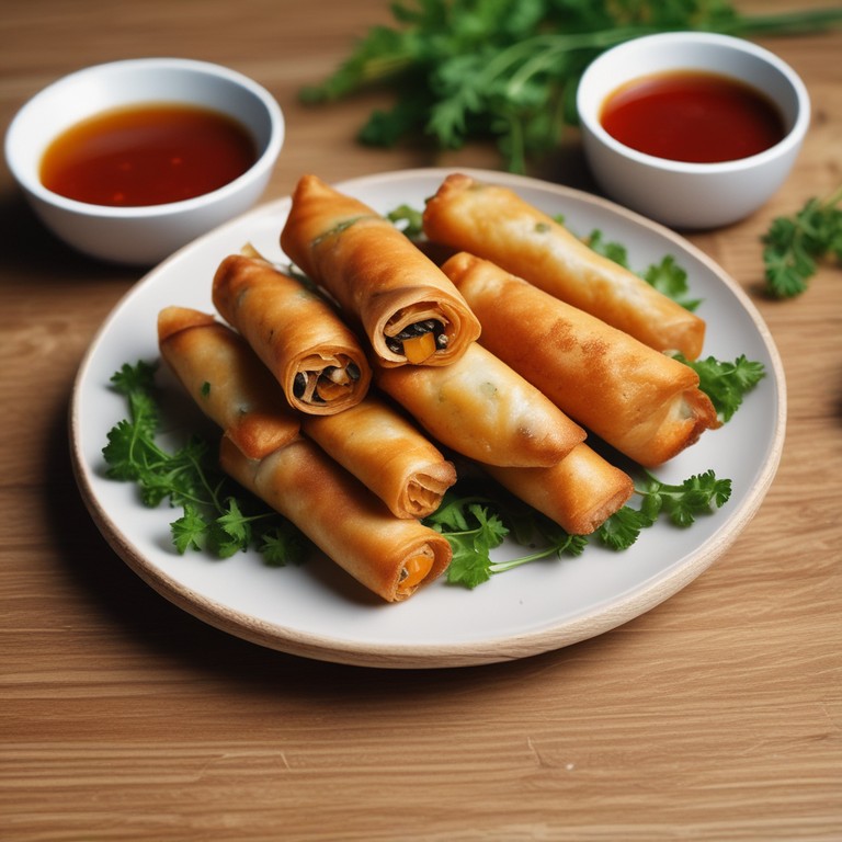 Crispy Vegetable Egg Rolls with Sweet and Spicy Dipping Sauce