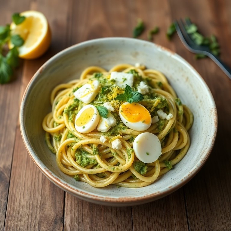 Cremige Pesto-Nudeln mit Käse und Ei