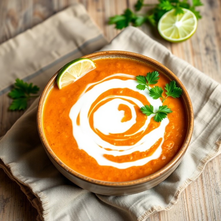 Rote Linsensuppe mit Kokosmilch und Gewürzen