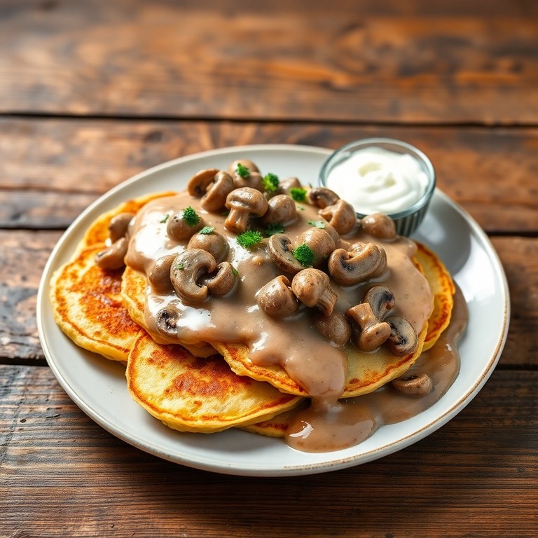 Potato Pancakes with Mushroom Gravy (Placki Ziemniaczane z Grzybami)