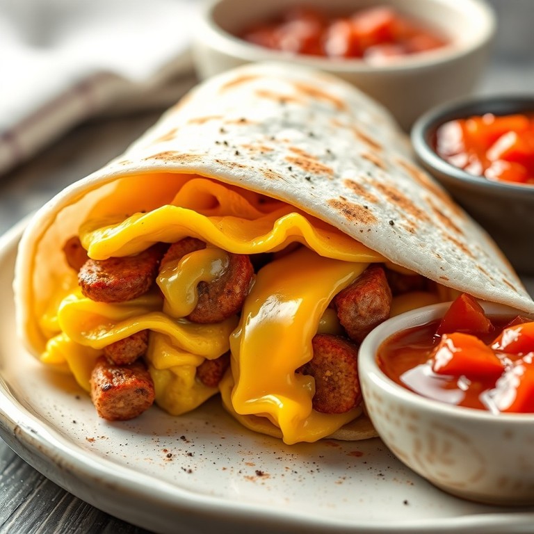 Huevos en Salsa de Tomate con Salchicha y Queso en Tortilla Crispy