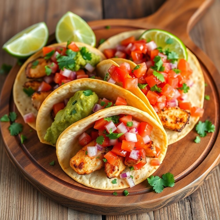 Tacos de Pollo a la Parrilla con Guacamole y Salsa Fresca
