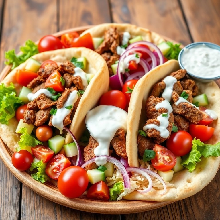 Mediterranean Gyros Platter with Tender Spiced Meat and Fresh Veggies