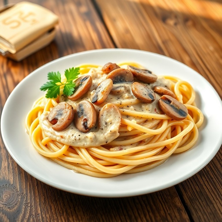 Espaguetis con Salsa de Champiñones y Queso Crema
