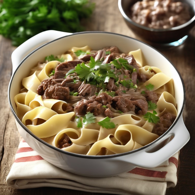 A comforting and flavorful beef and noodle dish that's perfect for a quick and easy meal.