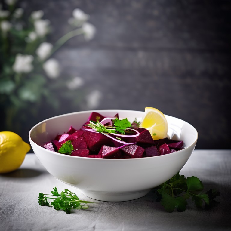 Ein erfrischender und gesunder Rote Beete Salat mit einem Hauch von Zitrone und Knoblauch.