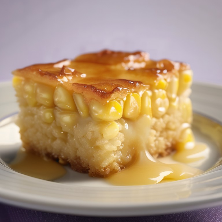 Delicioso pastel de maíz dulce con un toque de mantequilla y azúcar.