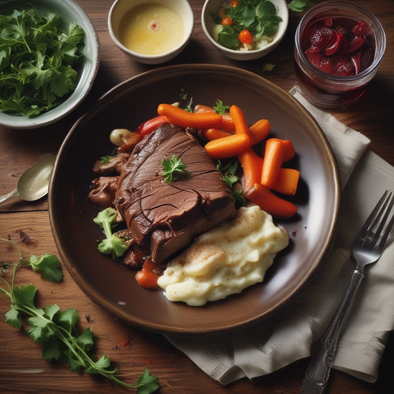 Un plat réconfortant de paleron de boeuf mijoté dans un mélange riche de vin rouge et de crème, parfait pour les repas en famille.