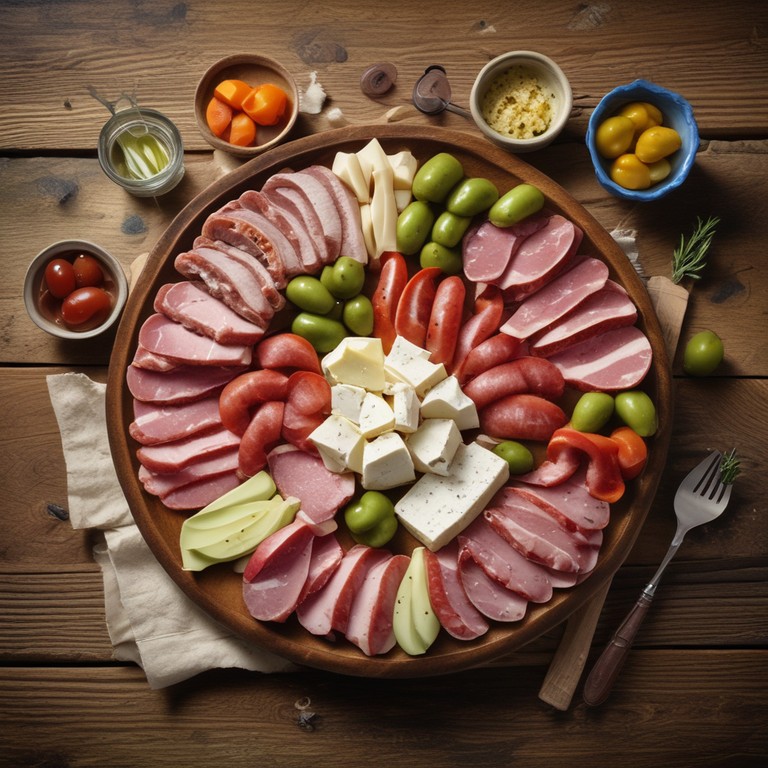 Una deliciosa y colorida selección de tapas que combina aceitunas, jamón cocido, queso fresco, salchichas y queso en lonchas, perfecta para compartir en una reunión o como aperitivo.