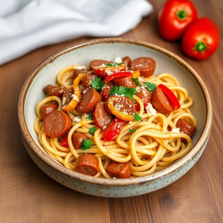 Um prato saboroso e reconfortante com um toque especial, ideal para um almoço em família ou um jantar aconchegante. O macarrão é envolto em um molho madeira rico e aromático, complementado pela linguiça calabresa e vegetais frescos.