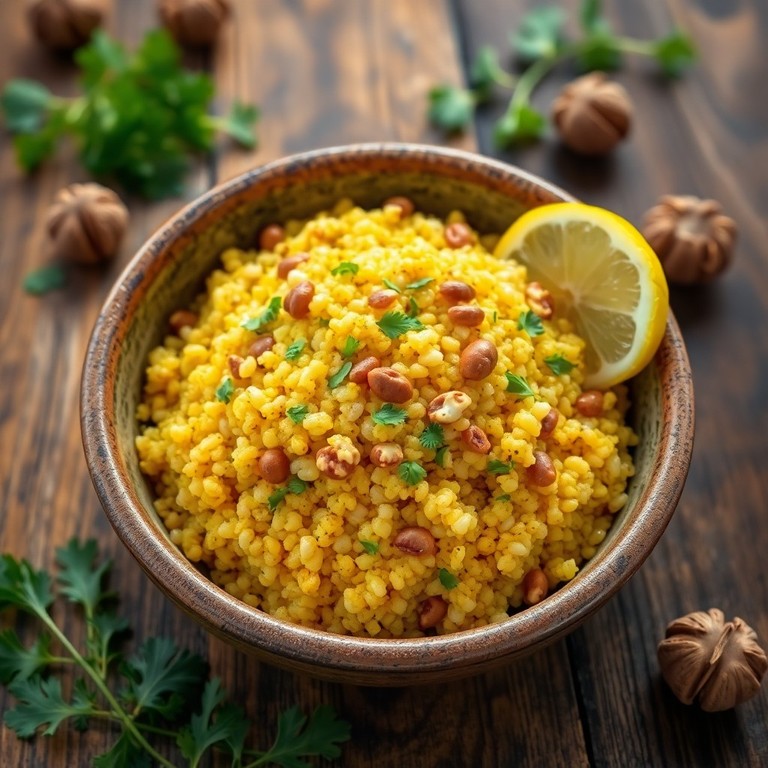 Farofa nutritiva con quinoa cocida, nueces troceadas y especias que brinda textura y sabor. Ideal para una comida ligera y saludable, libre de gluten y azúcares.
