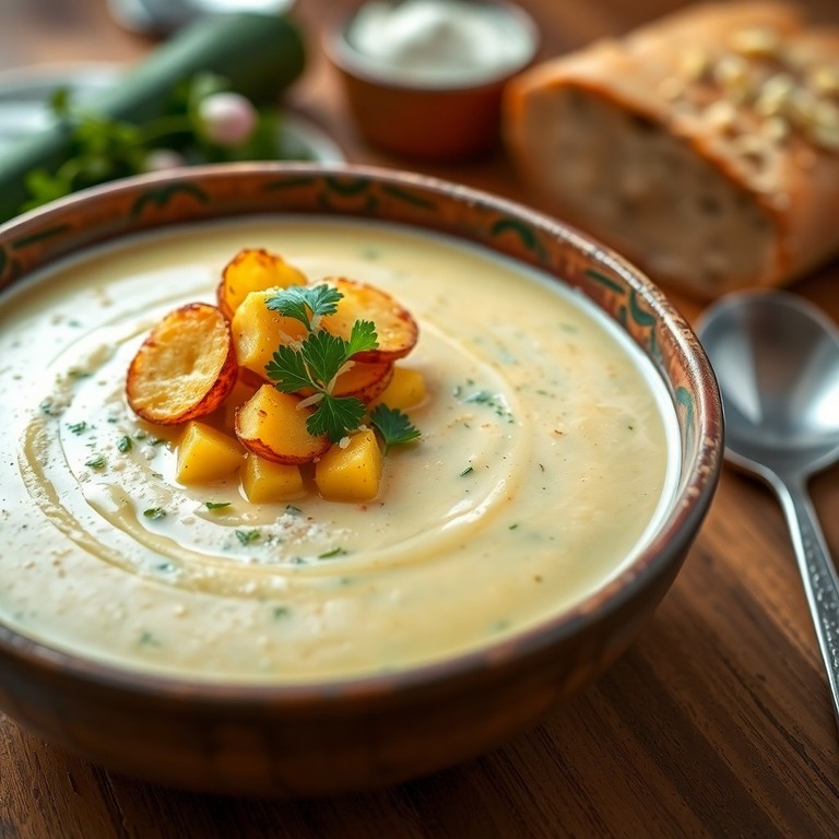 Sopa Cremosa de Abobrinha e Milho com Batatas Assadas