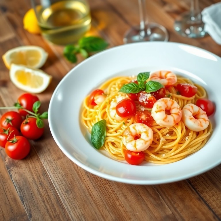 Eine schnelle und aromatische mediterrane Pasta mit frischen Garnelen, saftigen Kirschtomaten und Knoblauch, verfeinert mit Zitrone und Basilikum. Dieses Gericht ist in weniger als 30 Minuten zubereitet und bringt den Geschmack des Mittelmeers direkt auf den Teller.