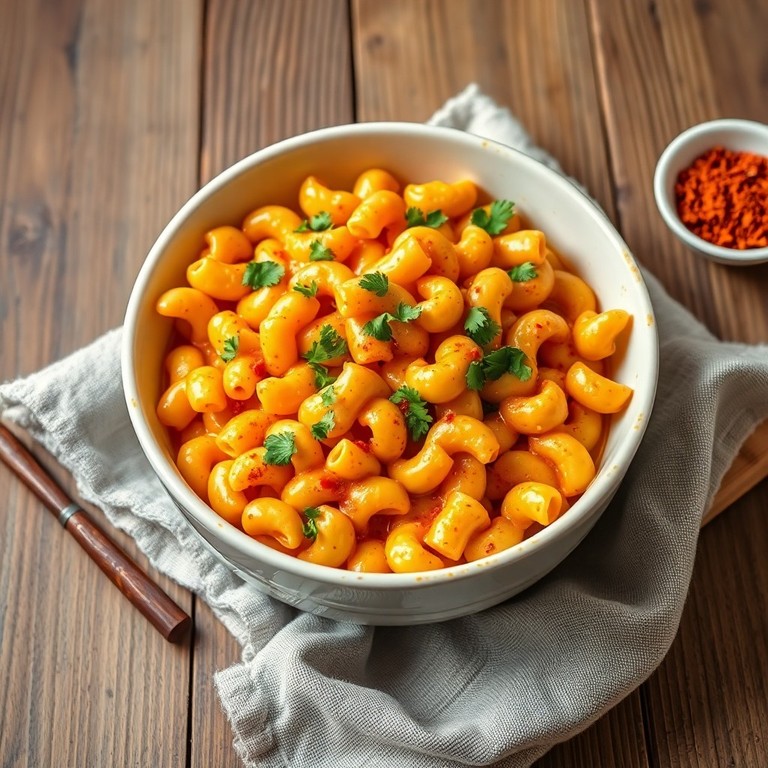 A comforting and quick-to-make macaroni pasta dish simmered in a spicy, flavorful milk-based sauce infused with garam masala and chili powder. Ready in under 20 minutes, this recipe balances creamy texture with warming spices for a satisfying meal.