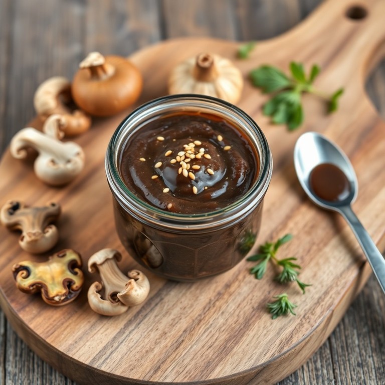 Diese herzhafte Pilz-Umami-Paste ist eine aromatische, vegetarische Würzpaste, die mit getrockneten Pilzen, Sojasauce und weiteren umami-reichen Zutaten zubereitet wird. Sie eignet sich perfekt, um Saucen, Suppen, Dips oder Gemüsegerichte mit einer intensiven Tiefe und Komplexität zu verfeinern. Die Paste ist vielseitig einsetzbar und lässt sich im Kühlschrank gut aufbewahren.